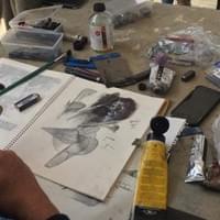This course centers around the creation of one or more sketchbooks. We will emphasize the contrast between left and right pages, blend various styles—from abstraction to figuration—and experiment with a range of techniques. Participants will explore drawing and painting, finger drawing, cutting, collage, monotypes, printing, overpainting photocopies, ink stains, pen work, tracing with carbon paper, and dipping. In essence, we’re here to have a great time!